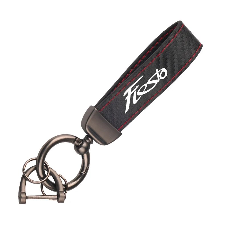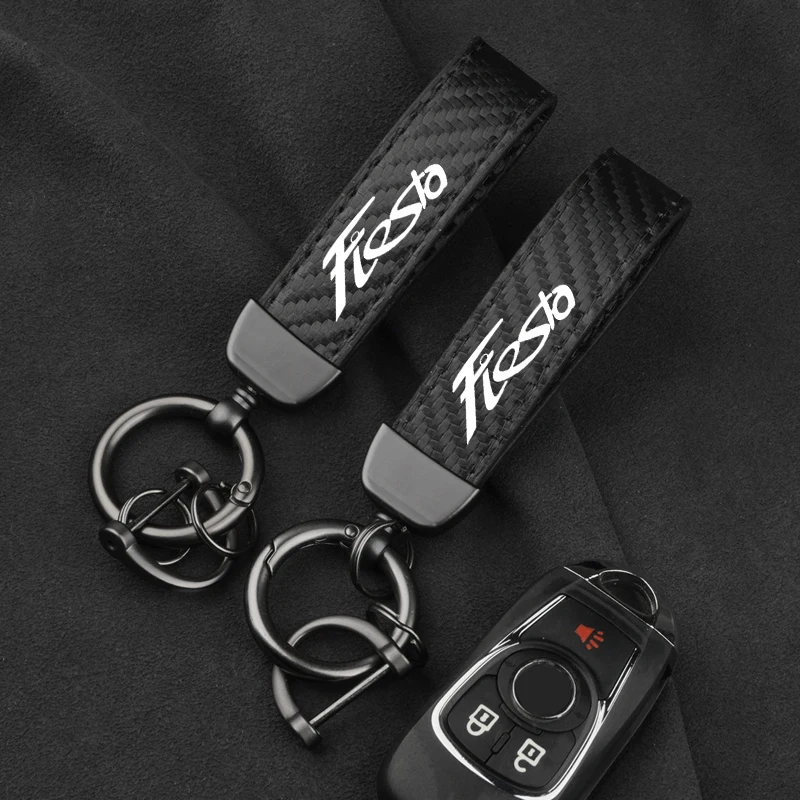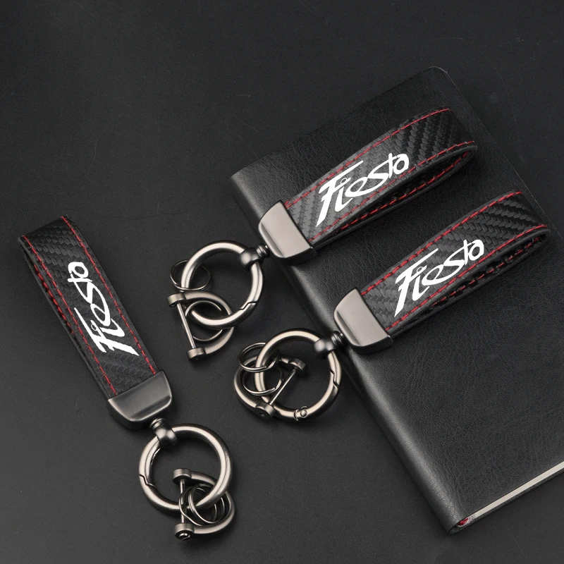 Leather Carbon Fiber Car Ring Keychain Trinket Zinc Alloy Keyrings Rotate 360 Degrees For Ford Fiesta Key Rope