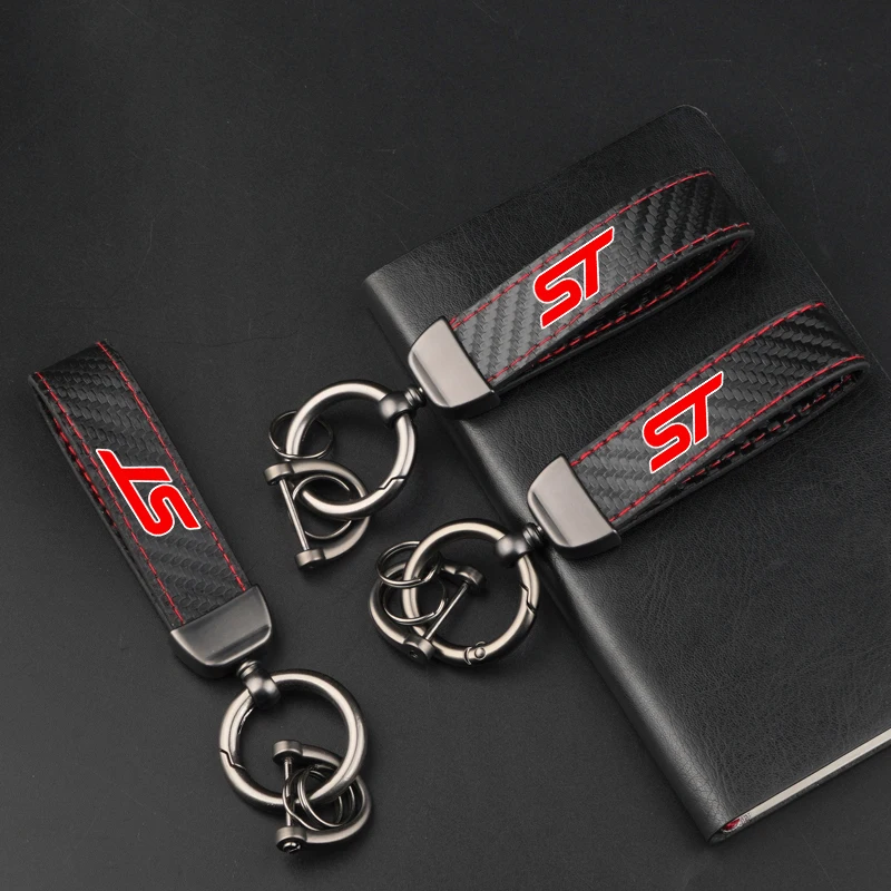 Ford ST Focus Mondeo Fiesta EcoSport Leather Carbon Fiber Car Ring Keychain